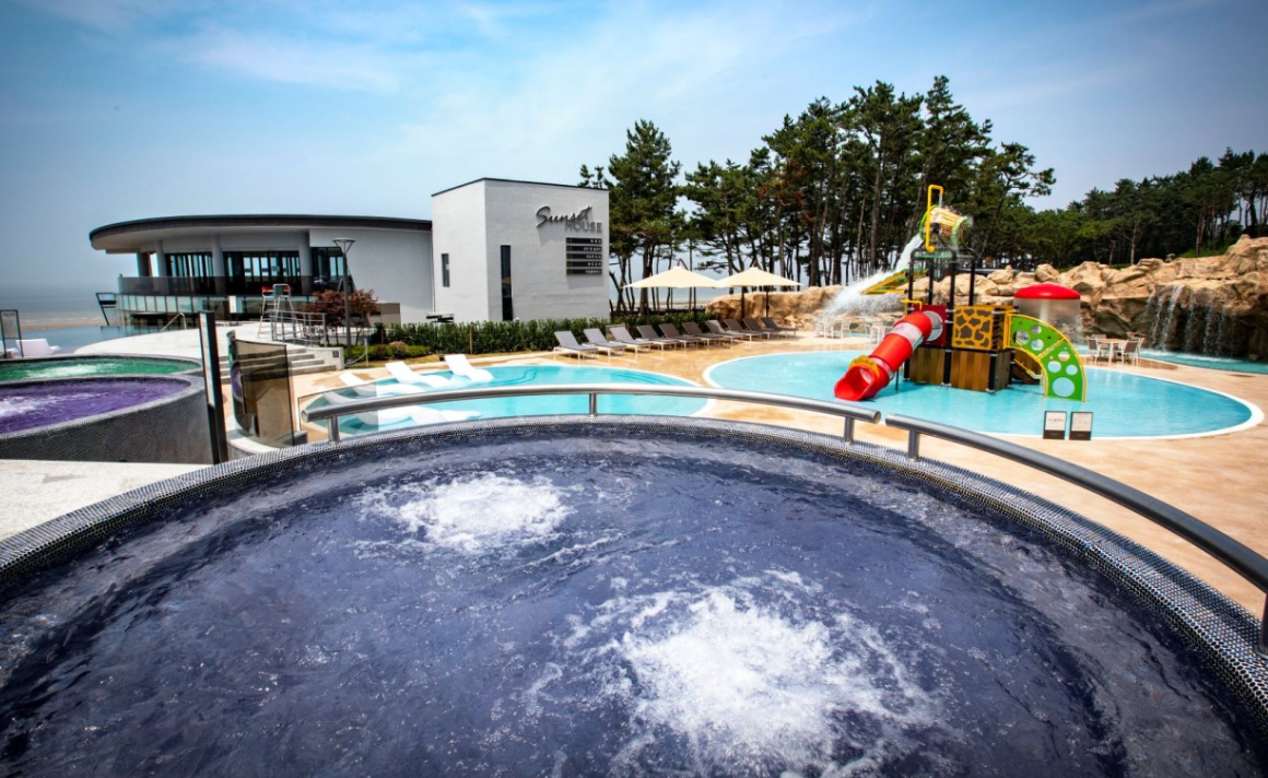태안 아일랜드 리솜 오아식스 선셋스파 온천 사우나는 오아시스처럼 단조로운 일상속 시원한 휴식처와 야외 인피티니풀을 포함한 6가지 테마스파 꽃지 해변 노을 까지 감상 할 수 있는 가장 멋진 곳으로 유명한곳인데요. 몽환적이고 멋진 인생샷까지 남길 수 있는 곳입니다. 최신식 건물로 전체적으로 깨끗하고 대형규모의 관광명소 입니다.