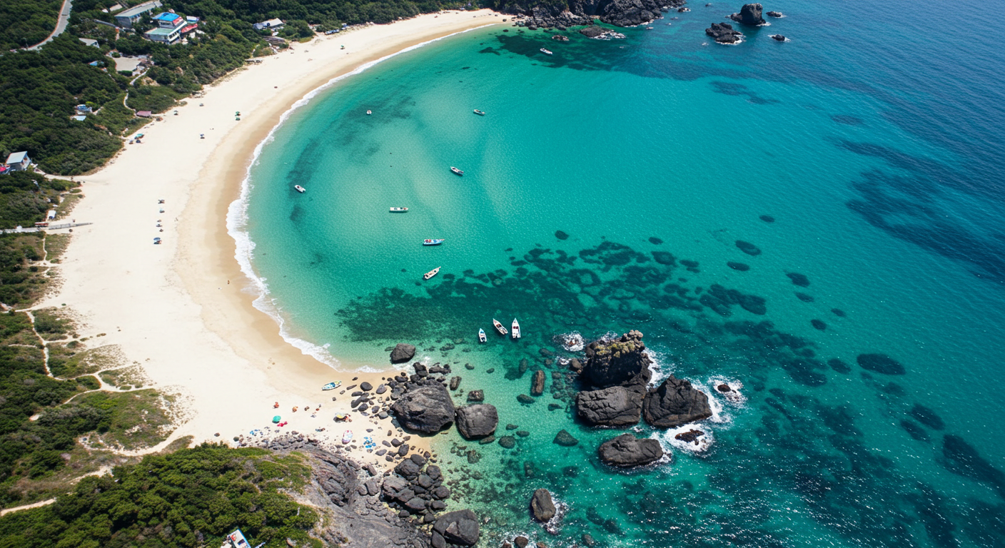 다음은 김녕 해변이에요. 애순 엄마와 해녀들이 물질하는 장면이 촬영된 곳이지요. 에메랄드빛 바다와 하얀 모래사장이 너무 예뻐서, 꼭 한번 가보고 싶어질 거예요. 해녀 문화를 직접 체험해볼 수 있는 기회도 있대요.
