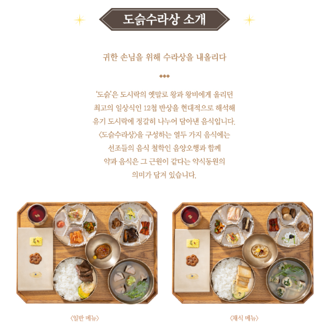 도슭수라상은 일반메뉴와 채식메뉴로 구성되어 있으니 채식하시는 분들께도 부담없이 즐기실수 있습니다.