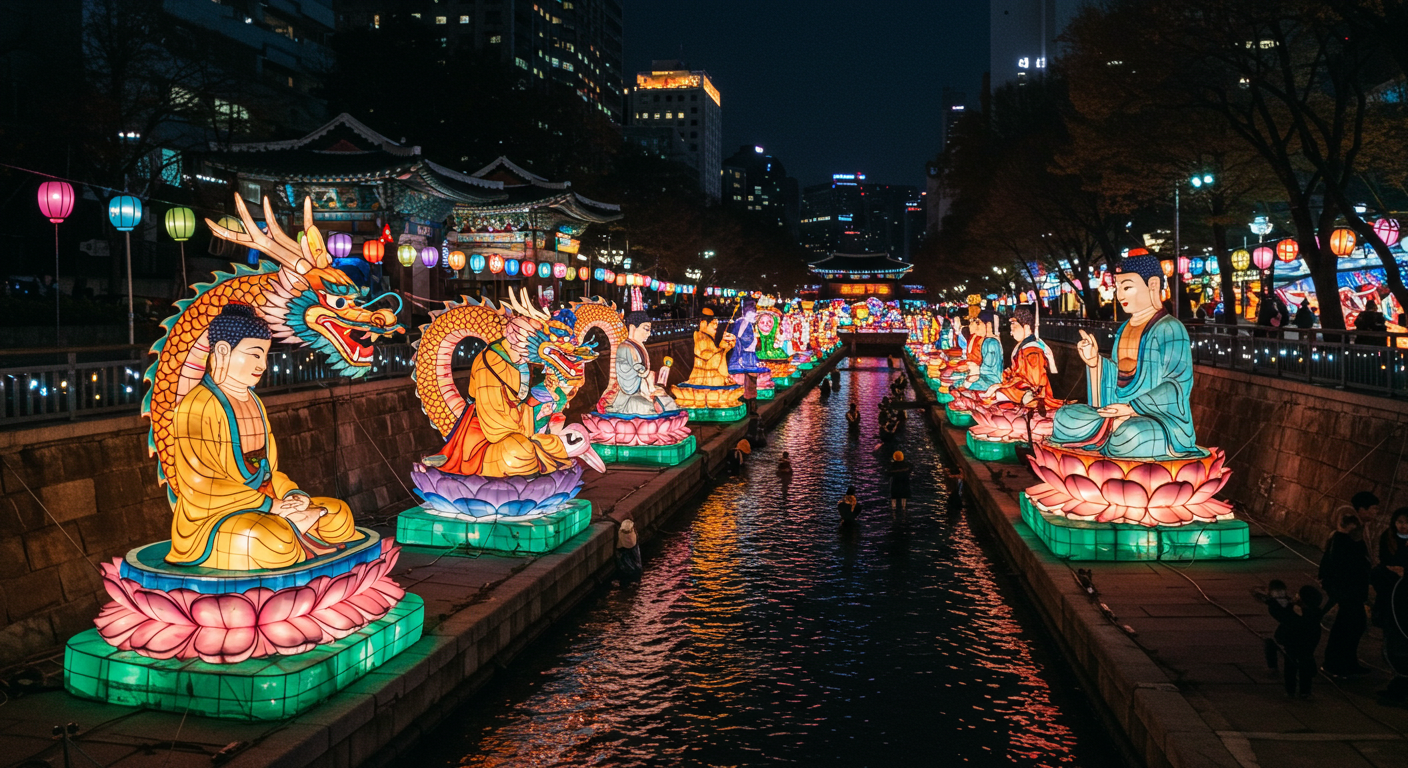 청계천을 따라 이어지는 전통등 전시회는 부처님오신날을 기념하는 상징적인 행사 중 하나예요. 용, 봉황, 연꽃 등 불교적 상징을 형상화한 대형등이 설치되어 한국 전통미를 물씬 느낄 수 있어요. 특히 야간에 조명이 켜진 후의 풍경은 사진 촬영지로도 인기 만점이에요.
