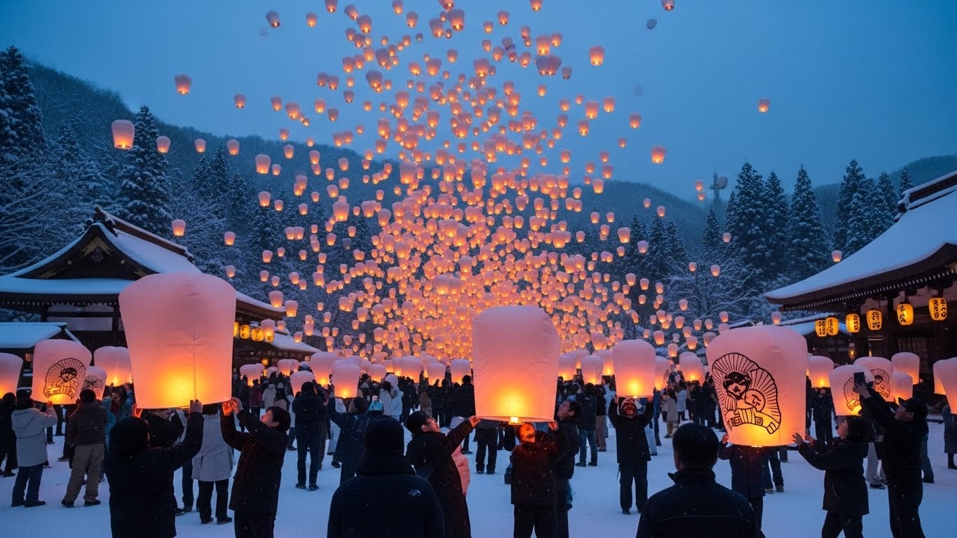 니가타현 쓰난은 일본에서도 손꼽히는 대설 지역이에요. 매년 열리는 눈축제는 풍등이 떠오르는 순간이 가장 아름답고 많은 여행객들이 찾는 행사예요. 니가타현 쓰난은 눈이 많이 오는 지역으로 유명해요. 이곳에서 열리는 쓰난 눈축제는 풍등이 하늘에 떠오르는 장면이 하이라이트예요. 광대한 설원을 배경으로 펼쳐지는 축제 분위기가 겨울 감성을 가득 담고 있어요.
