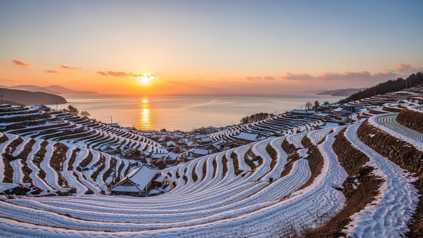 - 남해 다랭이마을: 층층이 쌓인 논둑 너머로 번지는 따뜻한 햇살