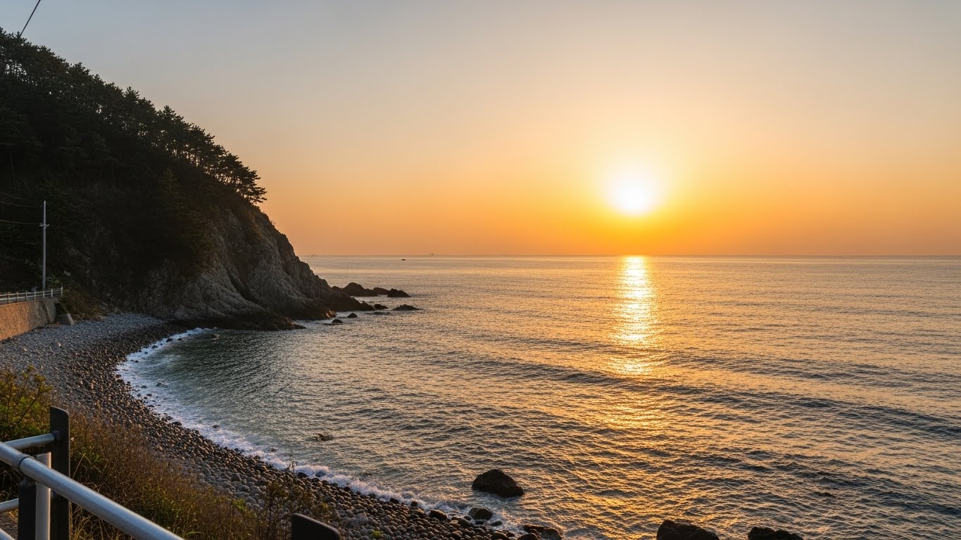 경주 대왕암은 문무대왕의 수중릉이 있는 곳으로, 바위 사이로 거칠게 몰아치는 파도와 함께 해가 뜰 때의 위엄이 대단해요. 감포 앞바다는 몽돌 해변이 펼쳐져 있어 파도에 자갈 굴러가는 소리를 들으며 차분하게 일출을 기다리기 좋아요. 신라 천년의 역사가 깃든 바다 위로 붉은 빛이 번져나갈 때, 과거와 현재가 만나는 듯한 묘한 감동을 느낄 수 있어요.