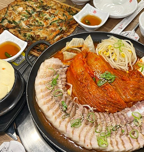 이곳의 가장 큰 장점은 단품 메뉴가 아닌 풍성한 한상차림 세트를 즐길 수 있다는 점이에요. 대표 메뉴인 수육김치찜 세트를 주문하면 메인 요리인 김치찜은 물론이고 바삭한 해물파전과 뜨끈한 뚝배기 수제비, 폭신한 계란찜까지 한꺼번에 제공돼요.가격대를 살펴보면 2인 기준 41,000원부터 시작하며 인원수가 늘어날수록 더욱 합리적인 가격으로 이용할 수 있어요. 3인은 53,000원, 4인은 64,000원, 5인은 74,000원 수준으로 구성되어 있어 가족 외식이나 친구들과의 식사 자리에서도 부담 없이 배부르게 먹을 수 있어요. 김치찜 외에도 돼지갈비 김치찜이나 코다리조림 같은 다양한 한식 메뉴가 준비되어 있어 선택의 폭이 넓어요.