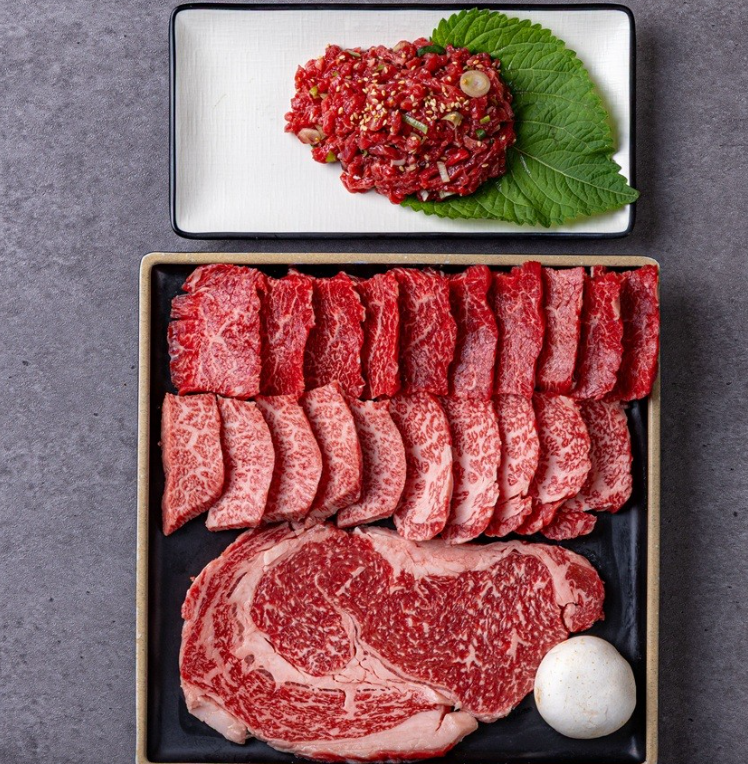 등급 높은 가사벌 한우 꽃등심과 특수부위