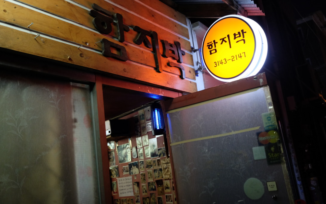 함지박은 철길과 가까운 위치라 노포 특유의 감성이 그대로 느껴져요. 세련된 공간은 아니지만, 늘 사람들이 찾는 편안한 동네식당 분위기라 오히려 더 매력이 있어요. 퇴근 시간에는 웨이팅이 있을 정도로 인기가 많아요.