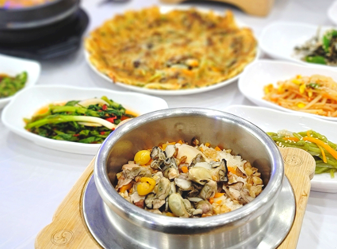영양굴밥의 가장 큰 매력은 푸짐한 구성과 신선함에 있어요. 갓 잡은 굴을 여러 개 넣어 밥과 함께 조리한 덕분에 바다의 풍미가 제대로 살아있어요. 굴의 고소하면서도 신선한 맛이 밥알과 어우러져 입안에서 조화로운 감칠맛을 선사해요. 더불어 굴전과 청국장 등 다양한 반찬까지 곁들여져 한 끼 식사로서의 만족도가 매우 높은 편입니다. 여러 가지 반찬이 함께 제공되어 식사를 다채롭게 즐길 수 있어 많은 손님들이 방문할 정도예요.