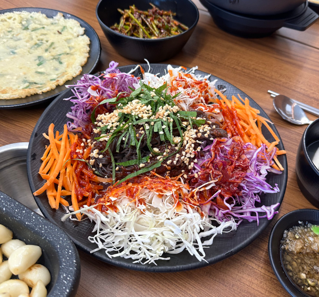 - 쟁반막국수: 새콤달콤한 양념으로 버무린 막국수가 맛을 돋웁니다.