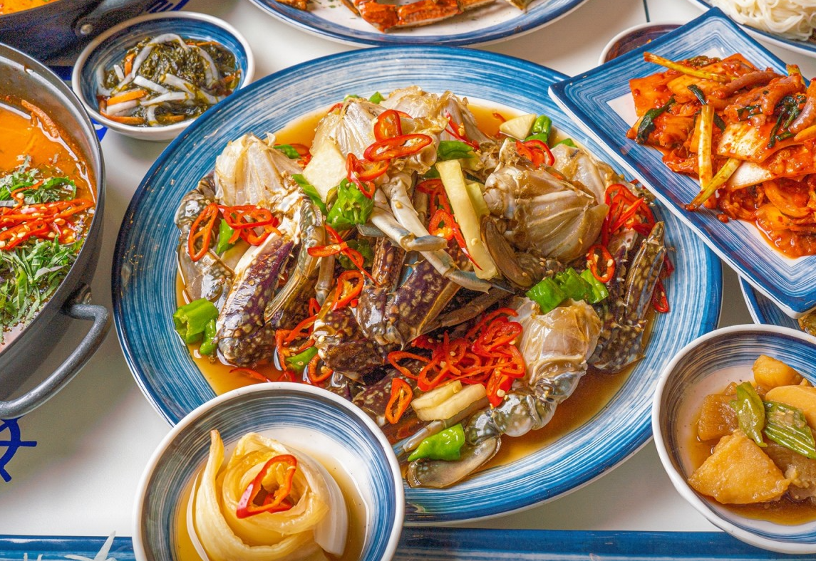 - 꽃게무침과 알고니찜의 이색적인 쌈 조합