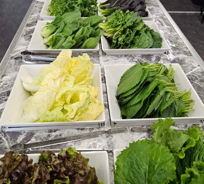 - 30여 종의 신선한 야채가 가득한 셀프바와 다양한 고기 메뉴