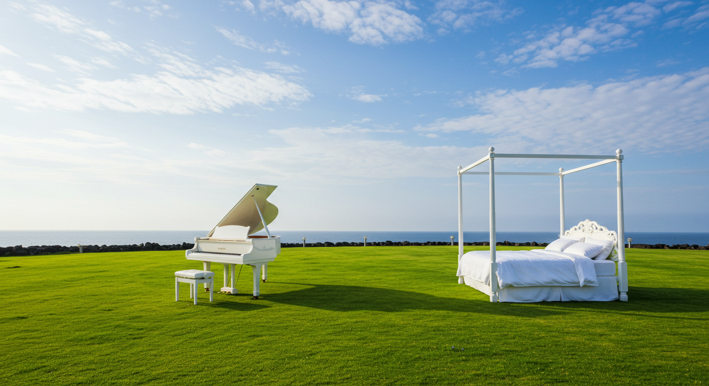 또 다른 매력은 바로 넓은 꽃밭이에요. 계절마다 다른 꽃을 볼 수 있어요. 봄엔 청보리와 유채꽃, 여름엔 메밀꽃과 버베나, 가을엔 맨드라미와 백일홍, 겨울엔 동백꽃이 피어요. 어느 계절에 가도 예쁜 꽃밭을 배경으로 사진 찍을 수 있겠네요. 포토존도 다양해요. 꽃밭 속 하얀 피아노, 동화 같은 침대, 숲속 오두막 등 인생샷 찍기 좋은 곳이 많아요. 소품도 빌려준대요. 풍선, 화관, 부케 같은 거 들고 찍으면 더 예쁘겠죠?