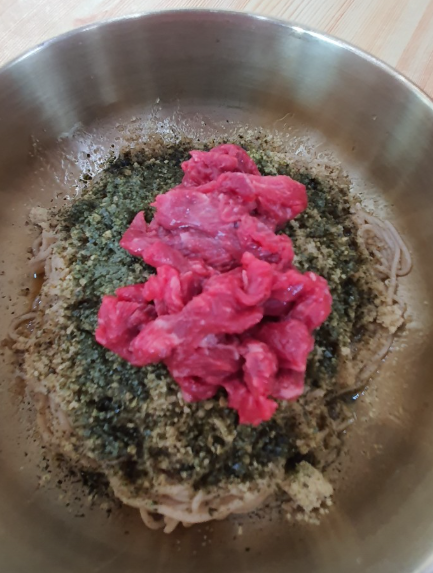 고소하면서도 부드러운 들깨 국물이 일품인 인기 메뉴 중 하나예요. 특히 따뜻하고 촉촉한 느낌의 국물 요리를 좋아하는 분들에게 추천드려요. - 육회 들기름 막국수