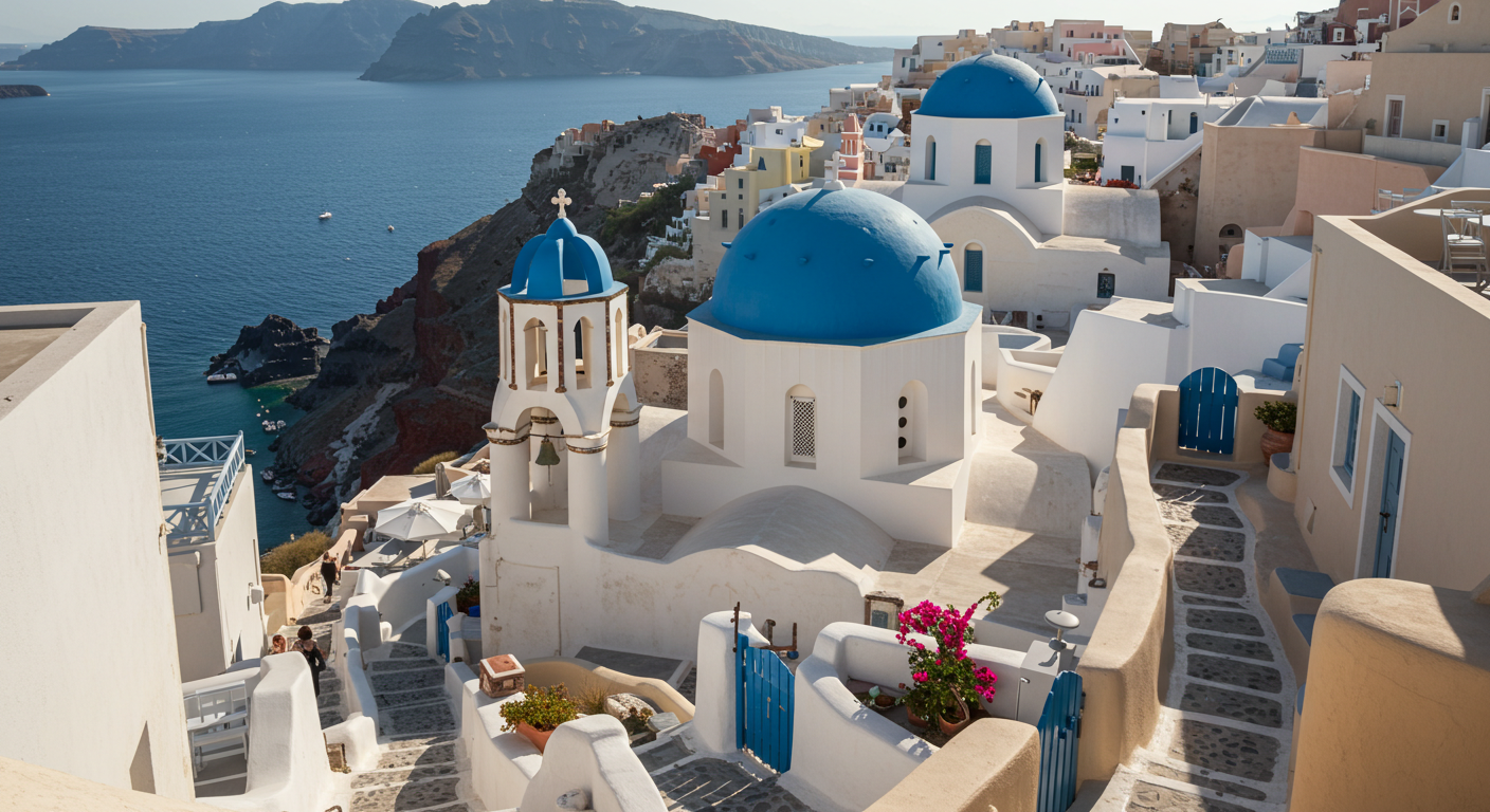 2. 산토리니 (Santorini, Greece) – 하얀 건물과 석양의 조화