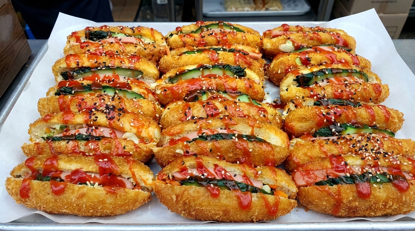 죽도시장 명물 사라다빵과 야채고로케의 바삭한 매력