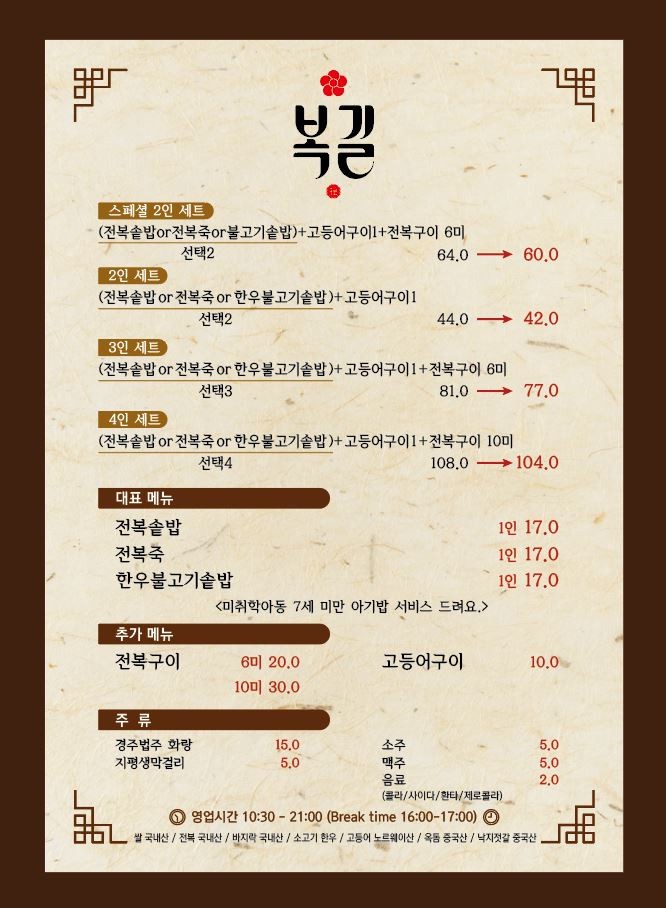 한우불고기 솥밥 고등어구이 전복솥밥 전복죽까지 다양한메뉴를 드실수 있습니다. 단체 예약도 가능하다고 하니 여행갈때 맛집 계획해보시는것도 좋을것 같습니다. 2층으로 구성되어 있는 가게여서 자리도 넓고 깨끗한 편입니다.